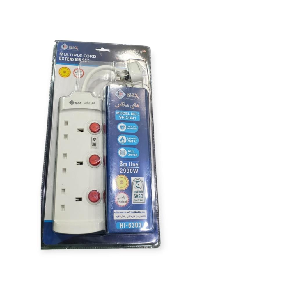توصيله هاي ماكس عالية الجودة 250فولت 13 امبير 3 متر 3 فيش وصلة كهربائيةعن هذه السلعةالعلامة التجارية: هاي ماكسالنوع: شرائط طاقة وواقيات حماية من شدة التيارسلك تطويل بطول 3 متر3 مقابس 250 فولتزر تشغيل/ إيقاف تشغيل