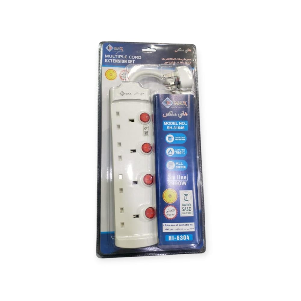 توصيله هاي ماكس عالية الجودة 250فولت 13 امبير 3 متر 4 فيش وصلة كهربائيةعن هذه السلعةالعلامة التجارية: هاي ماكسالنوع: شرائط طاقة وواقيات حماية من شدة التيارسلك تطويل بطول 3 متر4 مقابس 250 فولتزر تشغيل/ إيقاف تشغيل