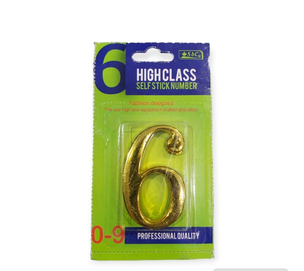 رقم الباب الذهبي المصقول 3 انش بحافة مشطوفة رقم 6 - برغي تثبيت رقم المنزل الامامي